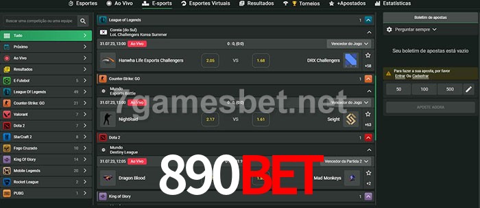 O 890Bet oferece uma grande seleção de opções de apostas em e-sports com probabilidades competitivas